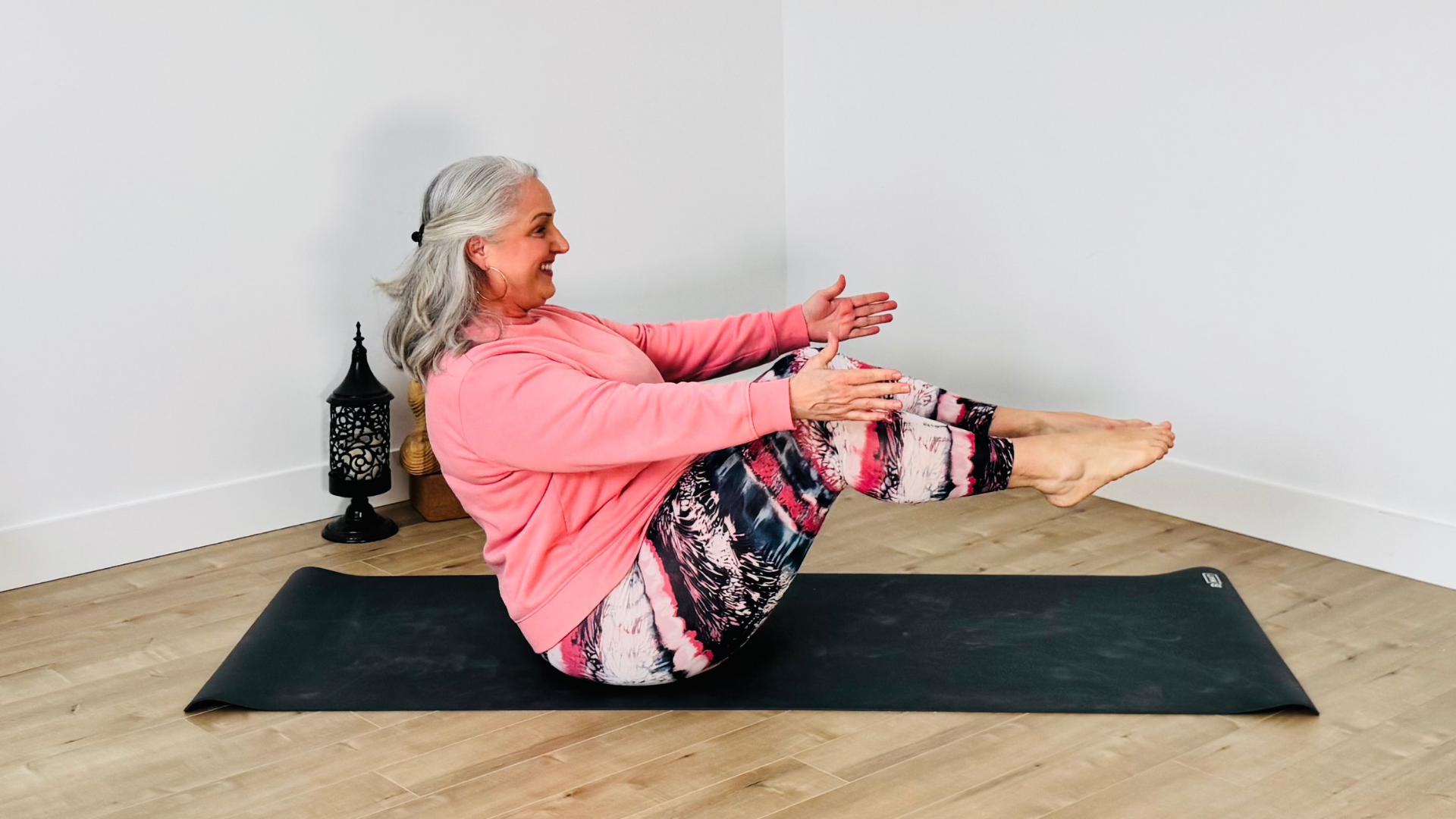 Dans les séances plus traditionnelles sur tapis, je te propose une multitude d’adaptations pour que tu puisses ajuster ta pratique et bouger selon tes capacités. Chaque séance est pensée pour t’accompagner avec bienveillance, t’inviter à honorer ton corps et à prendre soin de toi en toute confiance.
